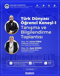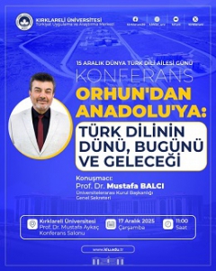 ![]() | "ORHUN'DAN ANADOLU'YA: TÜRK DİLİNİN DÜNÜ, BUGÜNÜ VE GELECEĞİ" KONFERANSINA DAVET 16/12/2025 8 Okunma Üniversitemiz Türkiyat Uygulama ve Araştırma Merkezi tarafından, 15 Aralık Dünya Türk Dili Ailesi Günü... |